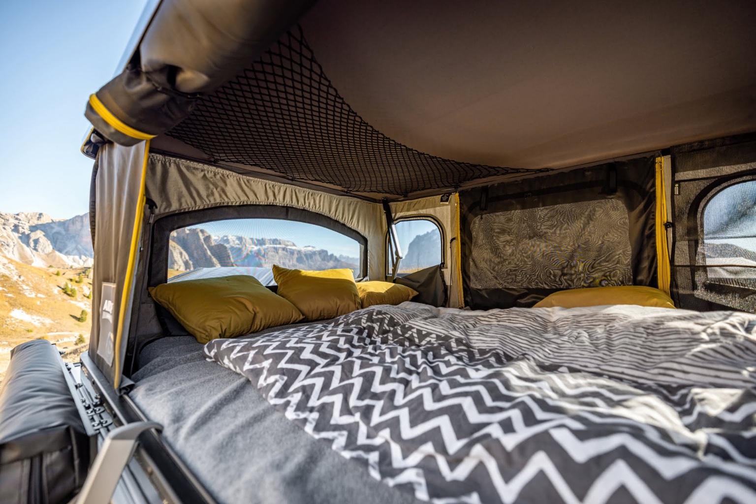 Představte si, že se probouzíte obklopeni přírodou, obklopeni klidem hor nebo šuměním moře, a první věc, kterou uvidíte, je úchvatný 360° panoramatický výhled z vašeho útulného střešního stanu. Naše minikaravany BLACKCAMP jsou standardně vybaveny komplexní řadou funkcí, které nejen nabízejí maximální pohodlí, ale lze je také flexibilně rozšířit. Ať už trávíte víkend v Alpách nebo plánujete několikatýdenní expedici, BLACKCAMP se přizpůsobí vašim potřebám a bude vás doprovázet na všech vašich dobrodružstvích.
