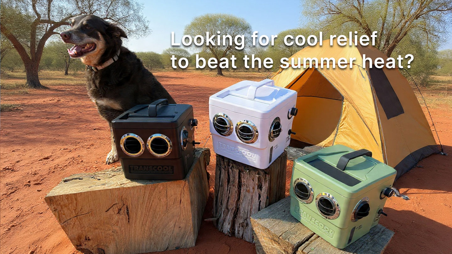 Transcool EC3-F PLUS je výkonná přenosná odpařovací klimatizace (12V/24V/230V) vyvinutá pro australské podmínky, vhodná pro cestování i použití v autě, karavanu, kamionu, stanu, lodi i doma.